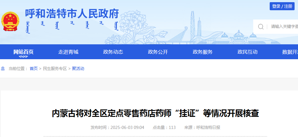 內蒙古將對全區(qū)定點零售藥店藥師“掛證”等情況開展核...